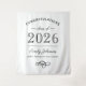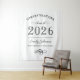 Elegante e moderno letreiro de fundo de foto personalizado para festa de graduação "Parabéns" apresenta um esquema de cores clássico preto e branco. Personalize com o nome do graduado e da escola. Nota: as cores do design podem ser personalizadas para combinar com outras cores da festa ou da escola.