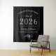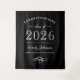 Elegante e moderno banner de foto personalizado de "Parabéns" para festa de graduação apresenta um design de tipografia elegante e um esquema de cores clássico preto e branco. Personalize com o nome do graduado e da escola. Nota: as cores do design podem ser personalizadas para combinar com outras cores da festa ou da escola.