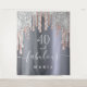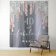 Uma tapeçaria de 40º aniversário moderna e glamorosa. Um fundo falso de metal prateado, com aparência de folha decorado com gotas de brilho rosa dourado, rosa e prata falsa, com efeito de tinta pingando. Com o texto: 40 e fabuloso. Personalize e adicione um nome. Texto em branco. A palavra Fabuloso é escrita com um estilo de letra manuscrita moderna com floreios.