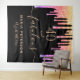 Uma tapeçaria de 40 anos de idade moderna e glamorosa. Um fundo preto clássico decorado com gotas de purpurina colorida em arco-íris, efeito de tinta pingando em roxo, rosa e dourado. Com o texto: 40 e fabuloso. Personalize e adicione um nome e uma data. Data de nascimento ou data da festa. Texto em dourado. A palavra Fabuloso é escrita com uma fonte moderna de letra manual com floreios.