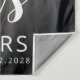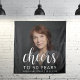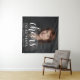 Esta tapeçaria de 50 anos personalizada mostra a foto personalizada, o nome e o aniversário do convidado de honra, junto com a palavra "Saúde" em um elegante roteiro de caligrafia branca. Uma tela escura ajuda a tornar o texto pop. Uma forma excelente de celebrar alguém que está fazendo cinquenta anos!