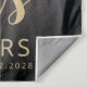 Esta tapeçaria de 50 anos personalizada mostra a foto personalizada, o nome e o aniversário do convidado de honra, junto com a palavra "Saúde" em um elegante roteiro de caligrafia em ouro. Uma tela escura ajuda a tornar o texto pop. Uma forma excelente de celebrar alguém que está fazendo cinquenta anos!