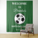 8th Birthday party for a soccer fan, sports, kids, boys, for him. Green and white, modern, elegant Birthday party tapestry. Please personalize it with your details.