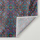 Um padrão vibrante e simétrico que apresenta um intrincado conjunto de cores, incluindo azuis profundos, púrpura brilhante e verdes vívidos, cria um efeito caleidoscópico. O design é densamente embalado, formando um motivo geométrico mesmerizador e repetitivo.
