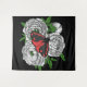 Ilustração vetorial desenhada à mão da mariposa cinabar sobre um buquê de flores de pénia