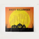 Crie um fundo para fotos com esta tapeçaria de Halloween com 3 abóboras assustadoras, e uma lua cheia em um fundo laranja. O texto personalizado "Feliz Halloween" pode ser alterado ou excluído.