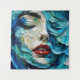 Keywords: abstract impasto painting, tactile texture art, female face artwork, ocean waves background, blue and green hues, red lips painting, oil on canvas, contemporary abstract art, textured surface painting, modern expressionism.