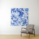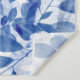 Tapete De Parede Abstrato Azul e Folhas Brancas
