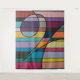 Este vibrante desenho geométrico combina listras horizontais ousadas em tons ricos de roxo, azul-turquesa, rosa, laranja e amarelo com curvas pretas arredondadas que criam um contraste marcante. A interação de linhas nítidas e arcos suaves dá a ele um sentimento moderno e enérgico, enquanto as cores em camadas evocam uma sensação de equilíbrio e movimento. Perfeito para adicionar um toque animado e contemporâneo a qualquer espaço, esta composição abstrata atrai o olhar com seu ritmo lúdico e harmonia dinâmica.