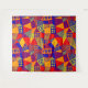 Um padrão de abstrato original composto por triângulos e retângulos decorados de várias formas que se parecem com prédios e casas.