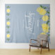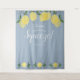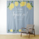 Com limões e folhagens em um fundo azul empoeirado, este cenário fotográfico botânico elegante para chá de noiva pode ser personalizado com as informações do seu evento especial. Criado por Thisisnotme©