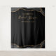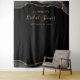 Esta elegante tenda de fotografia para chá de noiva apresenta uma borda de ágata preta e dourada na parte superior e inferior em um fundo preto. Personalize o texto dourado com as palavras "Chá de Noiva" (ou evento de sua escolha) em escrita à mão, juntamente com o nome da noiva e a data em fonte copperplate.