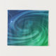 Composição digital de abstrato de tapeçaria usando várias cores à tona d'água, descartada em um gradiente liso e elegante que vai do azul intenso, puro ao verde puro. Enquanto as cores se misturam, sai um vórtice rotativo, onde os contornos são feitos de cores, realces e sombras. Toda a espiral é completada com pontos de brilho discretos que são descartados por toda a imagem, como num efeito de boque muito ligeiro. Toda a ideia lembra as águas doces e claras, com azul ao sol ou verde nas geleiras frias.