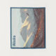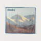 Uma águia-careca (Haliaeetus leucocephalus) voa em frente da faixa de Chugach coberta pela neve perto de Anchorage, AK. Leitura personalizável de texto, "Alaska" também é exibida.