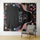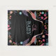 Design moderno, chique e elegante de tapeçaria para chá de bebê com tema de folhas florais botânicas e cegonha, apresentando um arranjo vibrante e ousado de várias flores, folhas e plantas em aquarela, que são dispostas de forma simétrica para criar uma moldura. Duas belas cegonhas estilizadas são naturalmente dispostas dentro do jardim botânico para criar um ponto focal no centro da peça, destacando as palavras "Oh Baby". Um fundo preto ousado contrasta lindamente com as cores florais vibrantes para criar uma tapeçaria moderna e impressionante. Todas as ilustrações contidas nesta tapeçaria são obras de arte originais desenhadas à mão por Moodthology. Você pode personalizar o tamanho do texto, cor do texto, fonte e layout de acordo com sua preferência pessoal de design.