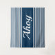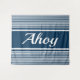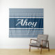 Design de texto Ahoy com decoração de listras brancas e azuis marinhos