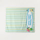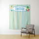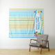Tapeçaria Alice no País das Maravilhas com um tema divertido de livro infantil. O fundo perfeito para a cabine de fotos da festa de aniversário infantil. A pequena menina Alice no seu vestido azul e o Chapeleiro Louco sentam-se em decoração de banheiro listrada de azul e amarelo. Personalize este acessório de banho caprichoso com o nome da sua criança.