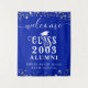 Bem-vindos alunos à sua reunião de segundos graus ou de colégios (editável para qualquer reunião de ano) com esta tapeçaria colorida personalizada para ser usada como um pano de fundo com estrelas de prata, luzes de cordas, roteiro de caligrafia e tipografia decorativa e personalizada com seu nome de escola e ano de aulas de graduação. As cores (mostradas em azul real, prata e branco) podem ser mudadas para as cores da sua escola ou para coordenar as cores do tema do partido no EDIT. OPÇÕES DE TAPESTRY: O exemplo é mostrado no tamanho de 50x60" — outros tamanhos estão disponíveis na página de pedidos. ASSISTÊNCIA: para obter ajuda com a modificação ou personalização do design, alteração de cor, redimensionamento ou transferência do design para outro produto, entre em contato com o designer ANTES DE ENCOMENDAR através da guia MENSAGEM de Bate-papo Zazzle abaixo ou envie um email para makeitaboutyoustore@gmail.com.