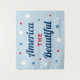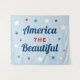 Tapeçaria de fundo de foto de festa patriótica elegante do feriado do 4 de julho apresenta um design de tipografia de citação "America the Beautiful" em cores vermelho, branco, azul e azul-marinho com estrelas e cor de fundo azul claro.