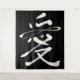 Tapeçaria de Arte de Caligrafia de Tinta de Marfim Chinês 'Ai' Kanji com Coração Rosa e Símbolo de Infinito 'Amor Eterno'.