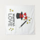 Uma ilustração de uma varinha mágica que faz corações vermelhos saiu de um chapéu com a citação de "Amor Mágico". Você está sonhando em ser um feiticeiro, um mágico ou um ilusionista? Algum feitiço de amor em mente? Celebre seu aniversário, dia de os namorados e amor com seus entes queridos mais românticos e especiais.