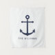 Tapeçaria Náutica Minimalista moderna com âncora azul marinho com nome personalizado no estilo de fonte serif marinho azul moderna em fundo branco. Perfeito como decoração da casa de praia, presente de inauguração e muito mais.