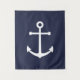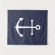 Tapeçaria Náutica Minimalista Moderna com âncora branca sobre fundo azul marinho. Perfeito como decoração da casa de praia, presente de inauguração e muito mais.