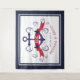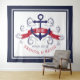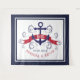 Âncora de barco náutica azul-marinho e vermelho-escuro e redemoinhos azuis elegantes. Estandarte vermelho-escuro para monograma de casamento personalizado.