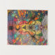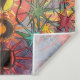 Este trabalho de arte é um abstrato vibrante e intrincado cheio de várias formas geométricas, padrões e cores. A composição é simétrica ao longo de um eixo vertical, com uma linha central de formas circulares interconectadas que se assemelha a uma série de órbitas ou planetas. Estas órbitas estão cercadas por linhas radiantes e padrões de explosão, criando um sentido de energia e movimento. O fundo é um caleidoscópio de cores, incluindo tons de azul, roxo, vermelho, laranja, amarelo e verde. As cores são aplicadas de forma gradiente, se misturando perfeitamente umas com as outras. Há inúmeras formas em forma de estrela espalhadas por toda a peça, cada uma com vários pontos e variando em tamanho e cor. Algumas estrelas estão cheias de cores sólidas, enquanto outras possuem padrões intrincados dentro delas. Na parte superior da trabalho de arte, há símbolos que se assemelham a signos astrológicos ou antigos glifos, acrescentando um elemento místico ou cósmico à peça. A parte inferior do trabalho de arte apresenta mais padrões e formas geométricas, incluindo triângulos, círculos e linhas que se intersetam e se sobrepõem. Um dos elementos mais marcantes é uma forma grande, preta e semelhante a tentáculos que se arrasta pelo centro da composição, acrescentando uma sensação de movimento orgânico entre as formas geométricas. Esta forma contrasta fortemente com as cores brilhantes e as linhas vivas dos elementos circundantes. No geral, o trabalho de arte é uma peça complexa e visualmente estimulante que combina elementos de geometria, teoria das cores e simbolismo para criar uma experiência visual dinâmica e envolvente.