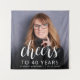 Esta tapeçaria aniversário de 40 anos personalizada apresenta a foto personalizada, o nome e o aniversário do convidado de honra, juntamente com a palavra "Saúde" em um elegante roteiro de caligrafia branca. Uma tela escura ajuda a tornar o texto pop. Uma forma excelente de celebrar alguém que está fazendo quarenta anos!