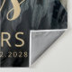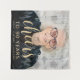 Esta tapeçaria personalizada de aniversário de 90 apresenta a foto personalizada, o nome e o aniversário do convidado de honra, juntamente com a palavra "Saúde" em um elegante roteiro de caligrafia em ouro. Uma tela escura ajuda a tornar o texto pop. Uma forma excelente de celebrar alguém que está fazendo noventa anos!