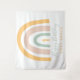 Um pano de fundo moderno de festas de aniversário perfeito para uma menina que apresenta um arco-íris moderno em rosa e choro pastel, com pop de amarelo-mostarda, com sua idade no centro. Personalize com os detalhes da festa embaixo, em chalé amarelo e pastel.