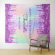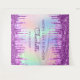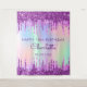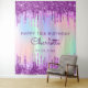 Uma tapeçaria para uma festa de aniversário de 10 anos (ou qualquer idade) feminina e glamorosa. Um fundo holográfico colorido de unicórnio e arco-íris com gotas falsas roxas e rosas. Personalize e adicione um nome, idade 10 e uma data. O texto: O nome é escrito em roxo com uma fonte moderna de letra cursiva. Pode ser usado como banner de boas-vindas, decoração de parede para a festa ou como fundo para cabine de fotos.