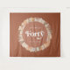 Design moderno de tapeçaria para festa de aniversário de 40 anos com grama de pampas terracota e tipografia botânica.