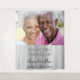 Uma tapeçaria celebrando 25 anos de casamento. Um fundo prateado falso elegante. Personalize e adicione sua própria foto de alta qualidade do casal feliz. O texto: Os nomes são escritos com um estilo de letra manuscrita moderna preta. Modelos para nomes e data. Pode ser usado como decoração de parede para a festa, fundo de cabine de fotos ou lembrança.