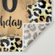Um estande de foto de estampa de leopardo ou pano de fundo de decoração de parede apresenta as informações da sua festa em um design de folha de ouro falso e sofisticado com o aniversário de QUALQUER IDADE neste estandarte de tapeçaria. Você também pode ALTERAR O TAMANHO. Convites CORRESPONDENTES e mais itens em nossa loja.