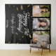 Cotografia personalizada ou Fundo de parede do partido como decor de parede de festa de aniversário! Espaço para 3 fotos da aniversariante, e personalize facilmente o design moderno de tipografia com seu nome, mensagem e data de aniversário. Este layout apresenta cintilações de confete dourado impressas sobre um fundo preto.