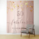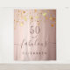 Uma tapeçaria de aniversário de 50 anos (ou qualquer idade) moderna e glamorosa. Um fundo cor-de-rosa dourado decorado com estrelas falsas pingando dourado. Com o texto: 50 e fabuloso. Personalize e adicione um nome. Texto cor marrom. A palavra Fabuloso é escrita com uma fonte moderna de letra manuscrita com floreios.