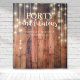 Madeira marrom rústica com iluminação de corda para uma festa de aniversário fabulosa e quarenta.