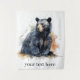 Adicione um toque de encanto rústico e estilo artístico a qualquer sala com esta tapeçaria personalizada com uma impressionante pintura aquosa de um urso preto. É a peça perfeita para uma sala de estar, dormitório, ou cabana, trazendo a beleza serena da floresta para sua parede. O design único tem um aspecto macio e pintado à mão com salpicos artísticos de cor. Você pode personalizar a tapeçaria com um nome, uma data especial, ou um local para torná-la uma peça única. Por exemplo, ele poderia ser personalizado com "The Millers", "Yellowstone 20XX", ou "Welcome to Our Den". É um presente excelente para qualquer um que aprecie o exterior e a arte única.