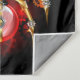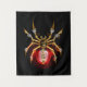 Aranha mecânica, com pá-pá de ouro, engrenagens de latão e uma lâmpada de vidro vermelha sobre fundo preto. Estilo Steampunk.