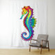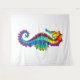 Articulação artificial, brilhante, arco-íris, cavalo de mar poligonal sobre fundo branco. Tatuagem brilhante.