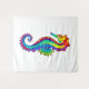 Articulação artificial, brilhante, arco-íris, cavalo de mar poligonal sobre fundo branco. Tatuagem brilhante.