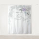 Ela Disse Sim! Propaganda de Foto de Casamento - use atrás da noiva e do noivo enquanto eles fazem seus votos, como pano de fundo para a mesa do livro de visitas ou atrás da mesa da festa de casamento. para a noiva e o noivo românticos. Folhas iridescentes prateadas e rosas azul pálido, lilás e branco deslumbrante cercadas por folhagem branca iridescente e folhas de eucalipto em um arco de casamento. Ela disse sim escrito em caligrafia moderna com os nomes da noiva e do noivo e data de casamento em texto de estilo contemporâneo moderno. Esta é parte de uma coleção de papelaria de casamento com acessórios de casamento combinando. Design criado para a BarefootBride ™ © por WhimsicalArtwork ™