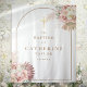 Pano de fundo para cabine de fotos de batismo com belas aguadas de grama das pampas florais e moldura de arco elegante, você pode personalizar com suas informações especiais em texto dourado chic. Projetado por Thisisnotme©