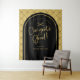 Crie um pano de fundo de fotos elegante e moderno para sua festa de formatura. Design apresenta "Parabéns Formando" em um moderno roteiro manuscrito e um arco preto sobre um fundo de um padrão de arco geométrico. Personalize o modelo para personalizar com um ano de classe e um nome de formando. © Kimbellish, LLC