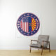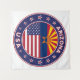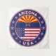 Crachá de Arizona com bandeira de Arizona e bandeira de cores USA, forma arredondada. Emblema da Arizona. Selo de Arizona. Coleção dos Estados Unidos.