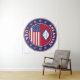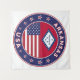 Crachá de Arkansas com pavilhão de Arkansas e bandeira de EUA cores, forma arredondada. Emblema de Arkansas. Selo de Arkansas. Coleção dos Estados Unidos.