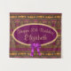 Lindo e glamoroso design de aniversário apresenta padrão floral art déco preto/roxo/ dourado que tem um estilo egípcio que inclui escaravelhos dourados. Oval de texto central que pode ser alterado de "Feliz Aniversário de 50 anos" para qualquer aniversário ou evento importante. Texto personalizável em fonte de letra cursiva dourada