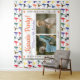 Artes marciais do Japão para garotos carateiros com silhuetas de karatê coloridas modernas e duas fotos para personalizar para o aniversariante. Faça a melhor decoração de karatê com este pano de fundo personalizado.